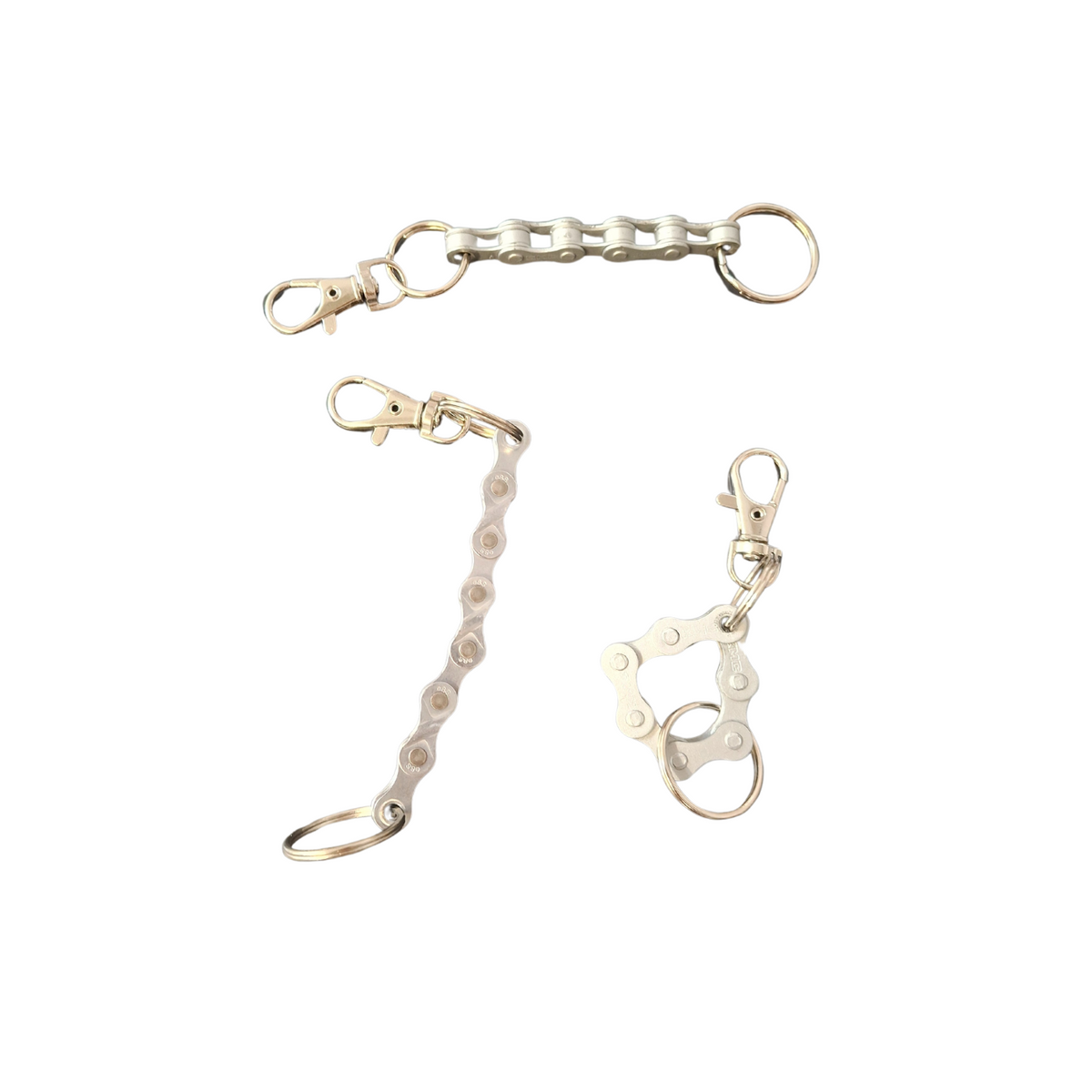 Hinta per / perHuollosta jääneet ketjut hyötykäyttöön! Upeat avaimenperät on valmistettu käyttämättömistä polkupyörien ja sähköpyörien ketjuista, jotka ovat jääneet pakkauksesta ylimääräisiksi.